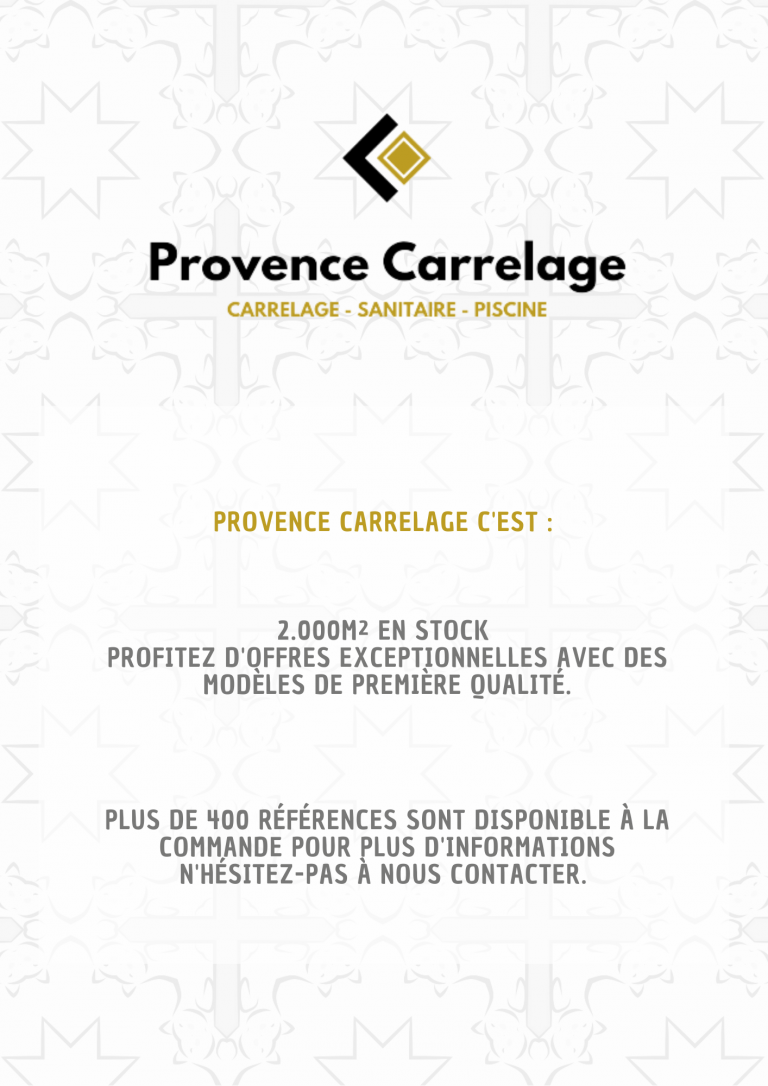 Provence Carrelage a acquis sa réputation auprès de sa clientèle grâce à une large gamme de carrelages, comprenant des modèles très sobre et moderne avec du marbre blanc, mais aussi avec des modèles plus originaux tels que du marbre bleu, vert ou rose…